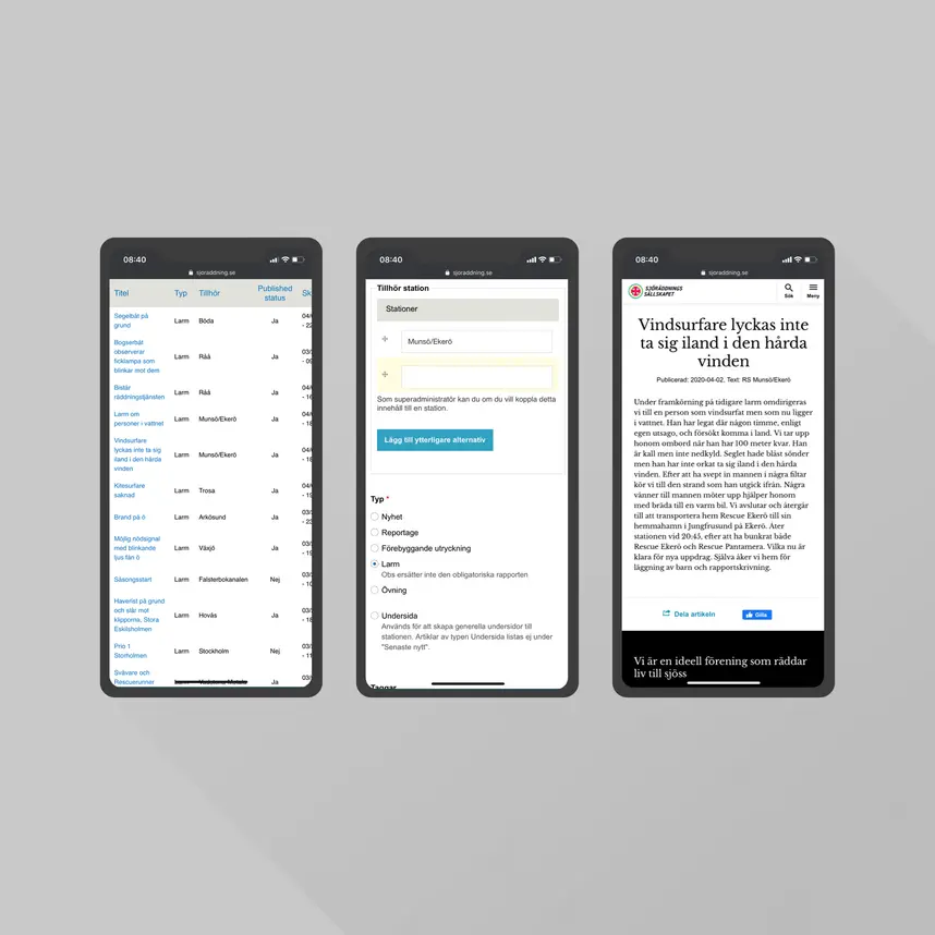 – I det här projektet har vi arbetat mycket med logisk design, som hur ska vi spara datan som via integration med Daedalos synkas till sjoraddning.se. Det handlar om datamodellerande bakom kulisserna, tillsammans med hantering och migrering av innehåll. Det har varit en väldigt smidig process tillsammans med Sjöräddningssällskapet, säger Adam Evertsson, kundansvarig projektledare på Kodamera.